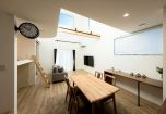 明るい日差しがたっぷり差し込む吹き抜けリビングが心地よい住まい。リビングにはスタディーコーナーを設け、お子さまの勉強スペースや趣味のコーナーとしても活用できます。お気に入りの本や雑貨を飾れる棚もあり、家族の個性が自然とあふれる空間です。