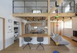 吹き抜け構造によって、室内にはたっぷりと自然光が入り、明るく開放的な印象を与えています。