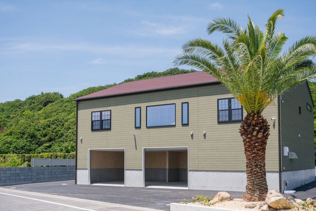 ガレージも完備されており、車やバイクの保管はもちろん、趣味や収納スペースとしても多目的に活用可能。
