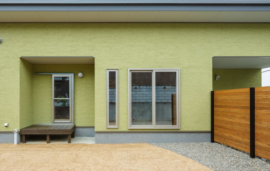 塀を設けることで、外からの視線を遮るプライベート性の高い空間になっています。