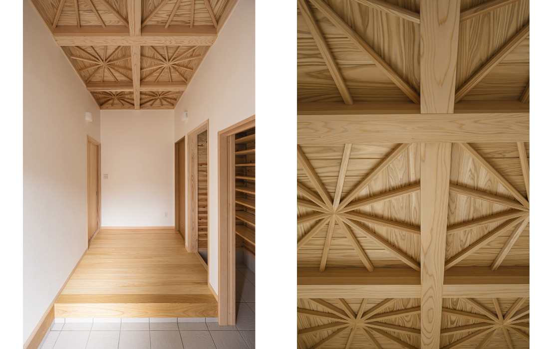 木組みの力強さとのバランスが美しく、温もりと優しさを感じるデザインです。